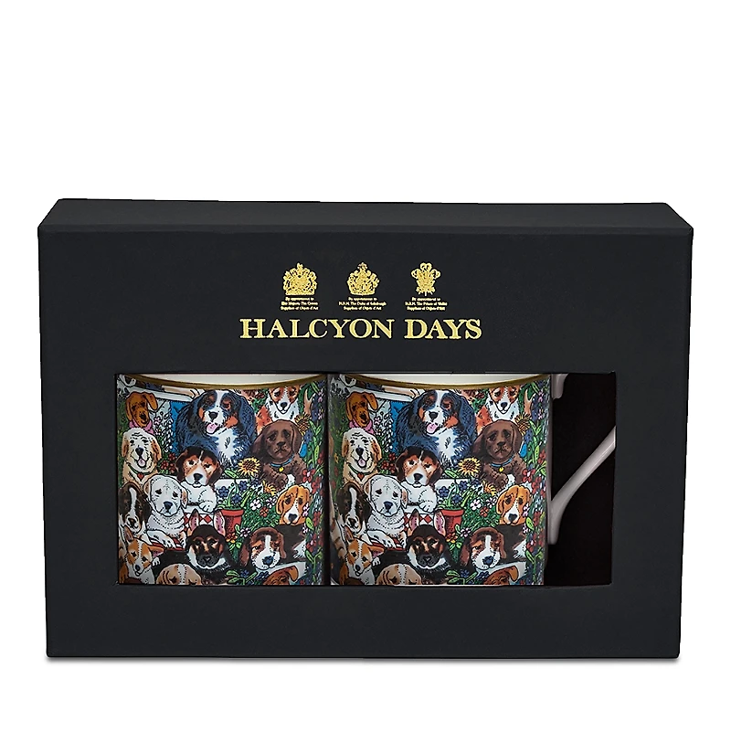 Halcyon Days Dogs Leave Pawprints Mugs, Set of 2.Color:MULTI.Material:100% bone china.Dinnerware.