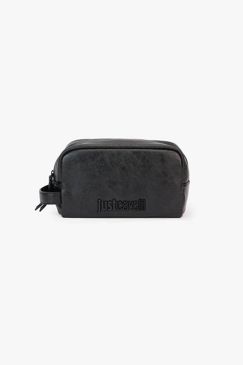 Carry your essentials with you at all times with this necessaire, featuring an elegant hammered effect that imparts a skillfully lived-in look. The design is completed with a convenient top zip closure and a side loop for easy carrying, enriched by the distinctive Just Cavalli logo in tone and embossed on the front.