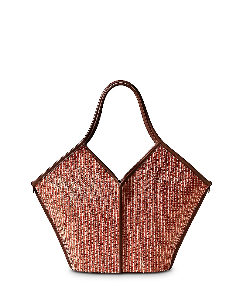 Hereu Calella Striped Raffia Tote.Color:Orange/Silver.Material:100% polyester; handles; leather; lining: 100% cotton.Handbags & Wallets.