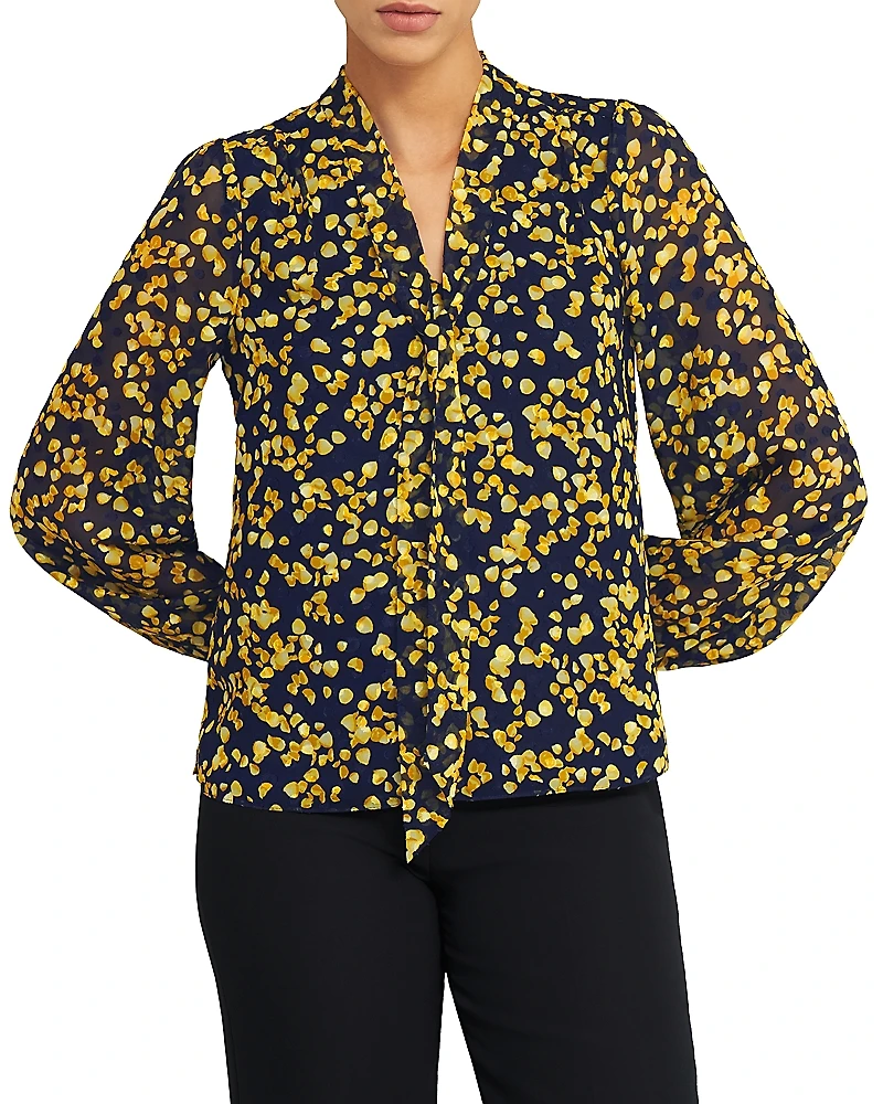 Hobbs London Aria Blouse.Color:Navy Yellow.Size:6 UK/2 US.Material:100% polyester; lining: 100% polyester.Tops.