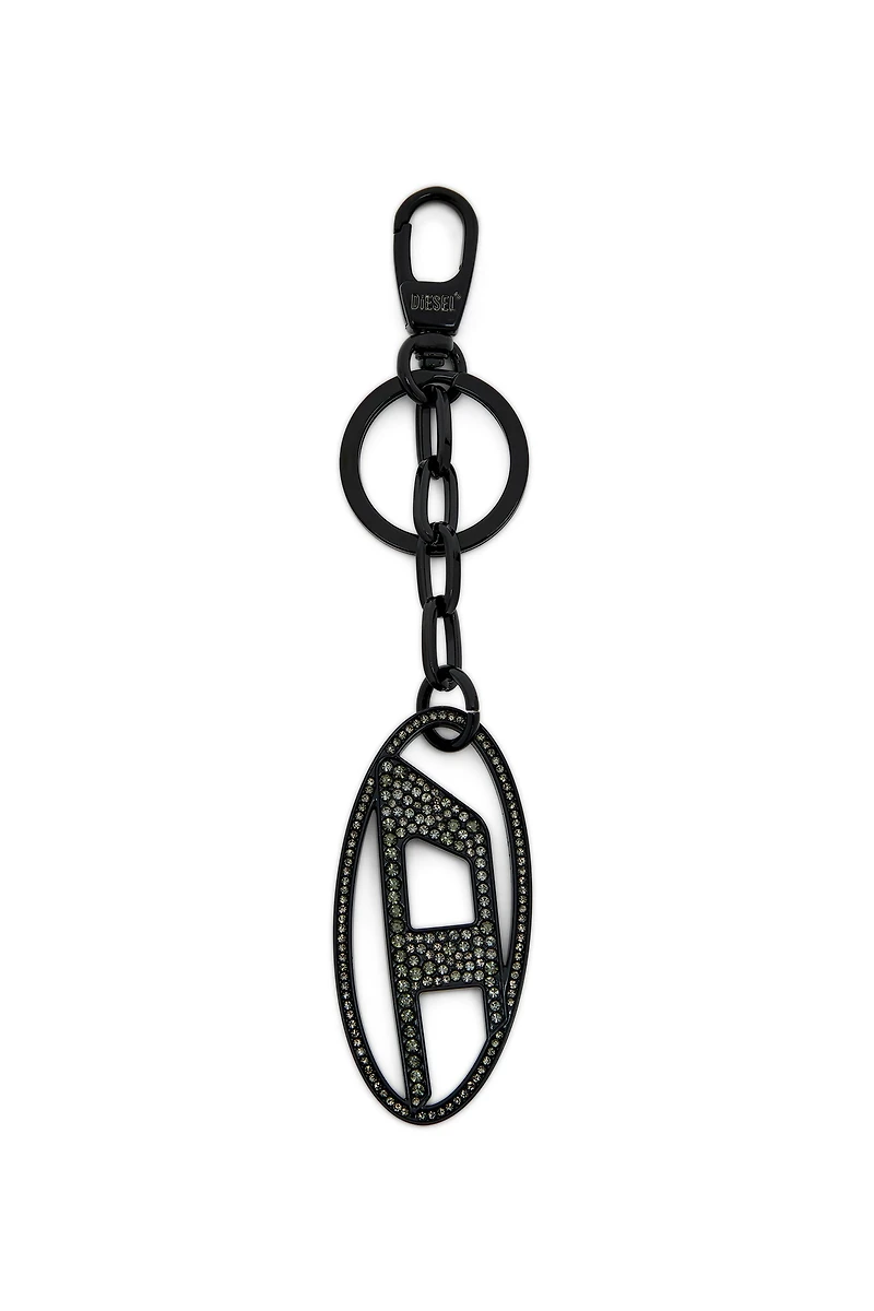 Cast from silver-tone metal, this women's keyring features the Oval D plaque suspended from a short chain – one side is polished, the other bedecked with crystals in varying sizes.