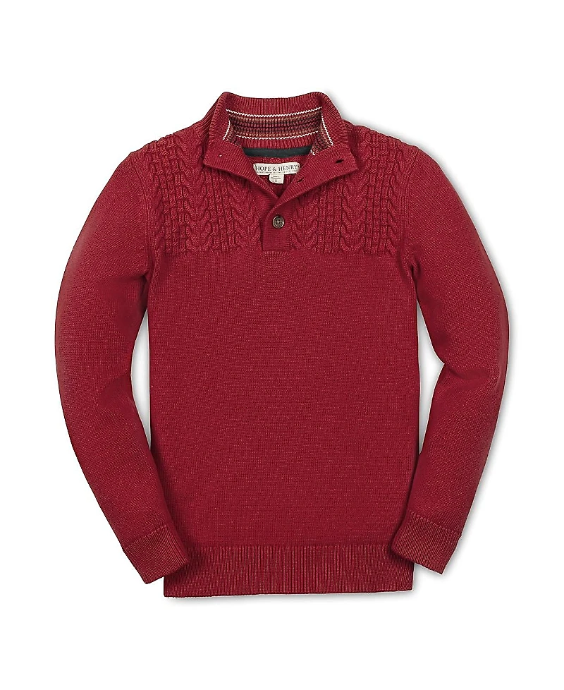 Hope & Henry Boys' Organic Long Sleeve Mock Neck Sweater with Cable Yoke - Little Kid, Big Kid
