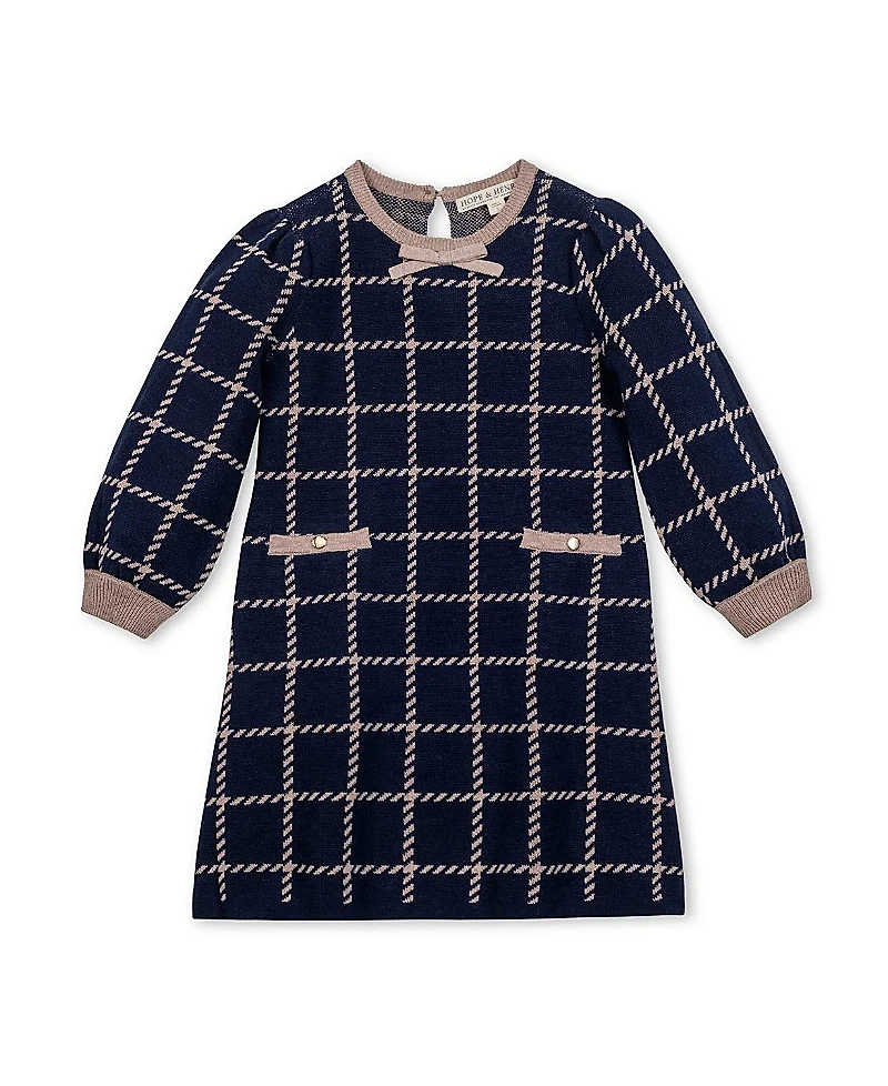 Hope & Henry Girls' Organic Puff Sleeve Bow Detail Intarsia Sweater Dress - Little Kid, Big Kid