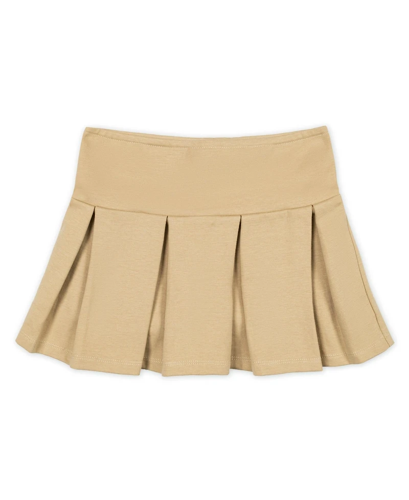 Our pleated schoolgirl skort in soft ponte knit pairs comfort with picture-perfect style. Features preppy pleating, an easy pull-on elastic back waist, and a soft jersey inner short to ensure this look is ready for playtime! Perfect for uniforms and pairs adorably with our collection of organic button down sweaters and tops.