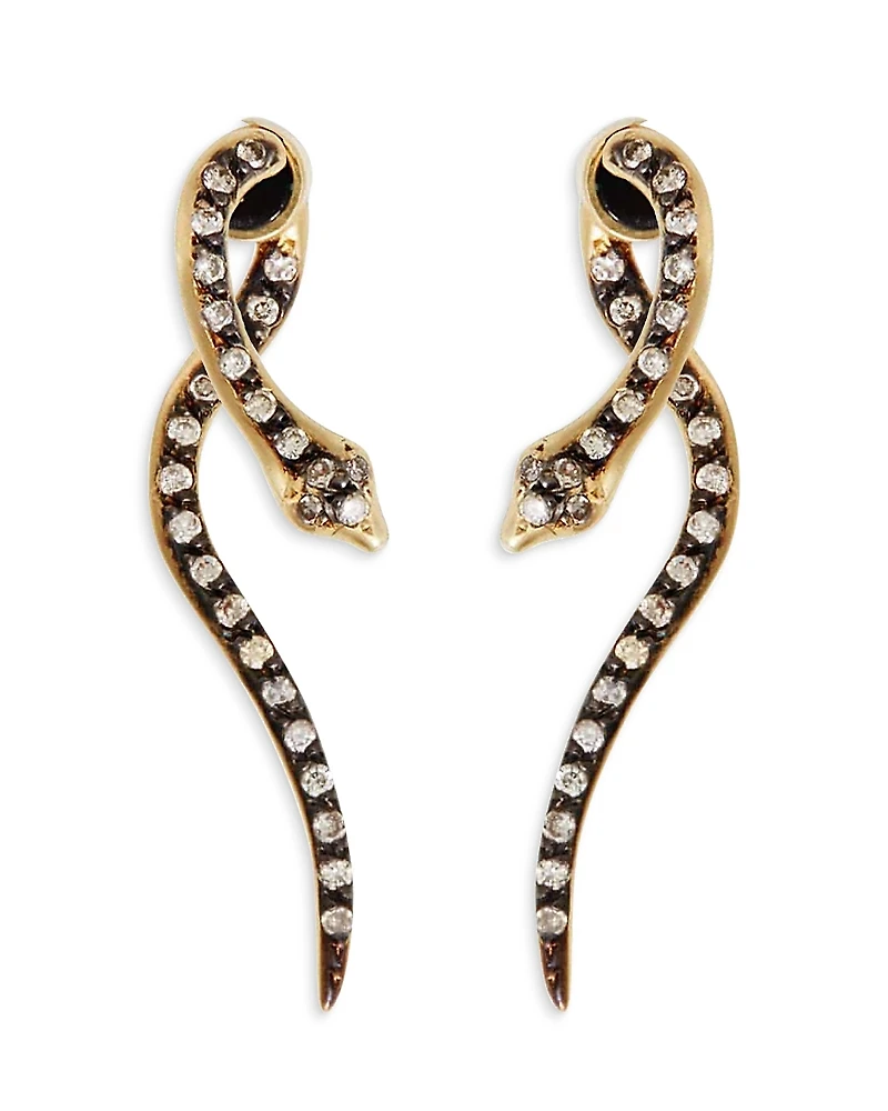 Shop Ileana Makri 18K Yellow Gold Brown Diamond Boa Earrings, 0.22 tcw in Los Angeles, CA