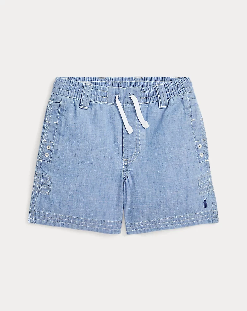 These drawstring shorts are crafted with indigo-dyed cotton chambray and washed for enhanced softness. At the left hem, they are embroidered with the iconic Polo Pony.