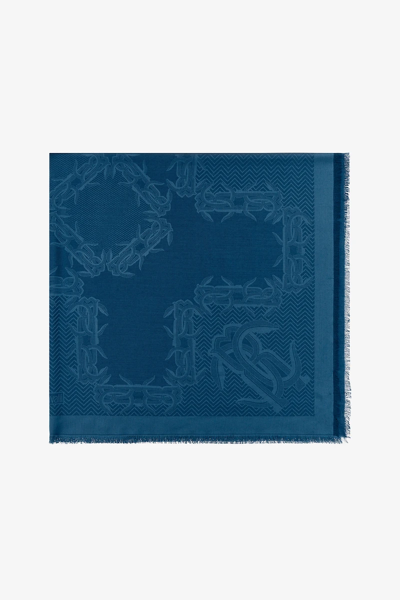 The iconic Mirror Snake Monogram, a symbol of Roberto Cavalli's DNA, is the star of the sophisticated jacquard pattern that decorates this soft shawl made of silk and wool. The whimsical Monogram is alongside a strict zig-zag pattern, also in jacquard, which gives rise to a subtle contrasting effect. The accessory is finished with the emblematic Roberto Cavalli logo on one side and slightly frayed edges.