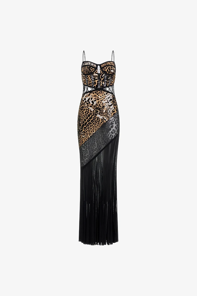 Asymmetrical Black Dress With Jaguar Skin Pattern