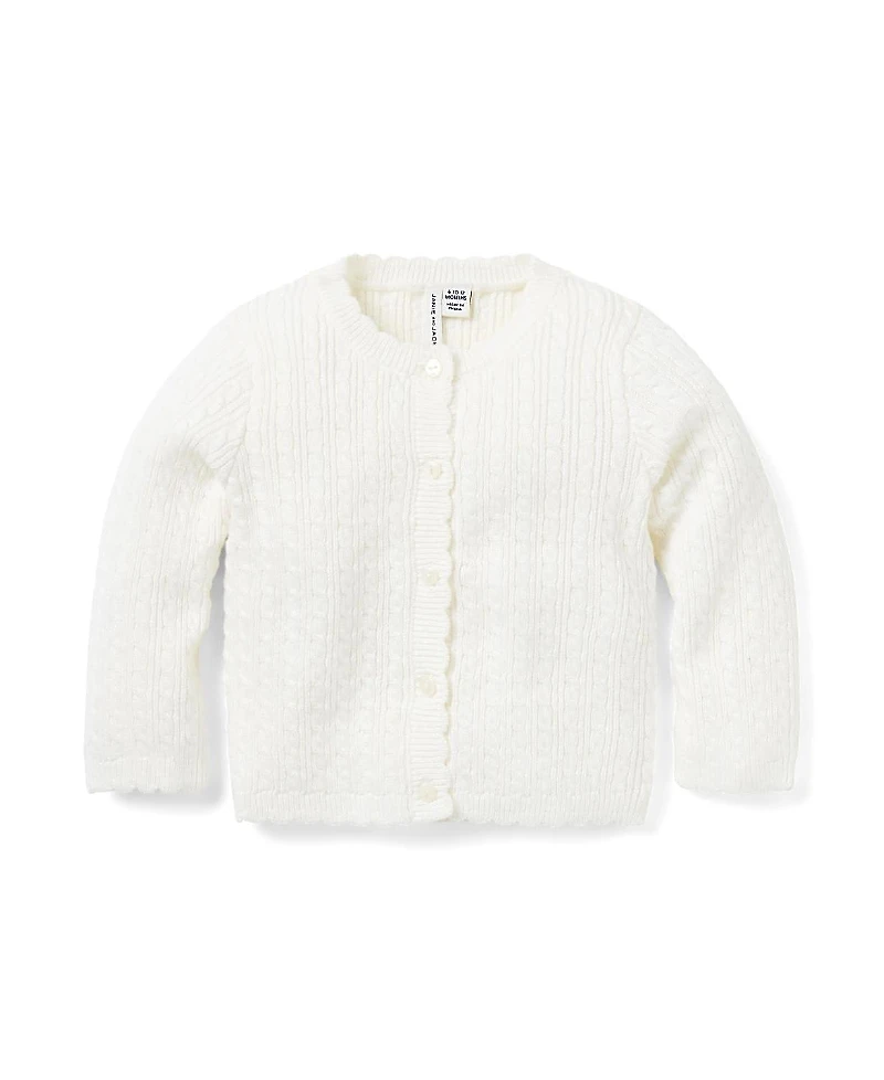Janie and Jack Girls' Cable Knit Cardigan - Baby.Color:White.Size:0-3M.Material:55% Combed Cotton/25% Rayon/20% Nylon.Sweaters.