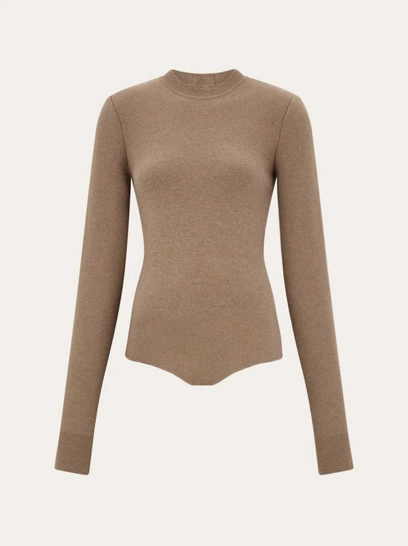 Soft, enveloping and inspired by the world of dance, this fitted bodysuit features long sleeves and a crew neckline. Made of extra-fine pure wool jersey interlock, it is fastened via small hooks underneath.