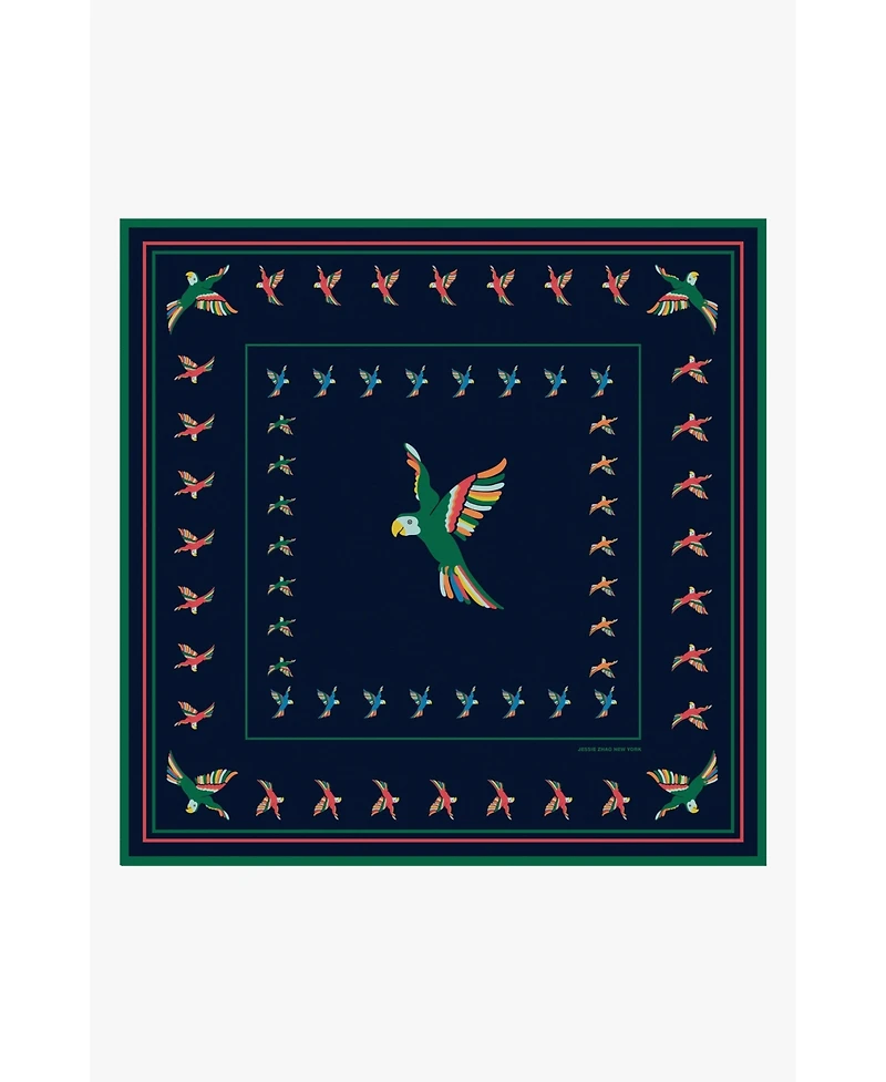 "Sky Parade" is inspired by the graceful spectacle of parrots soaring in harmony across the sky. The vivid interplay of tropical hues against a refined backdrop creates a balance of movement and sophistication. Finished with meticulously hand-rolled edges and presented in a high-end package, this scarf is both a statement of artistry and a perfect gift to treasure.