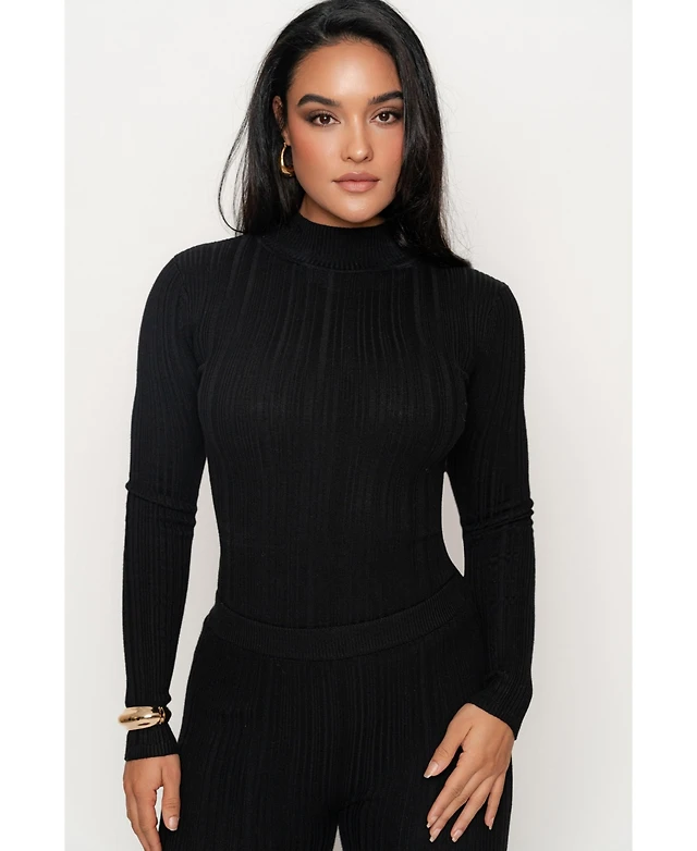 June + Vie Women's Plus Ribbed Mock Neck Top