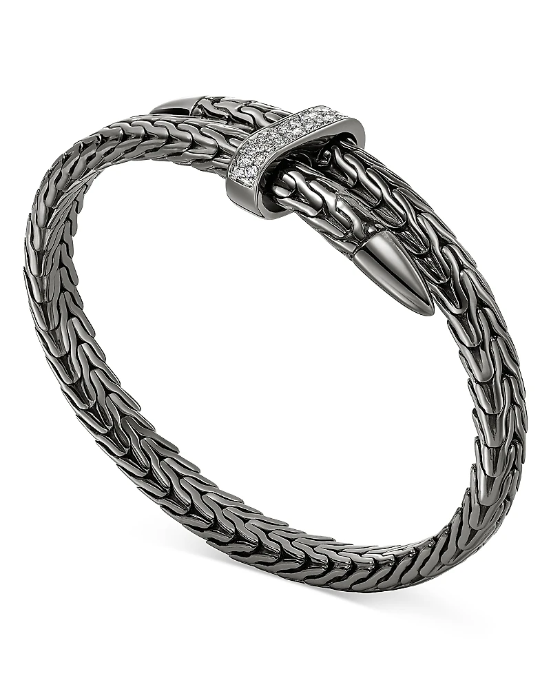 John Hardy Spear Pave Flex Cuff.Color:Black.Size:X Large.Bracelets.