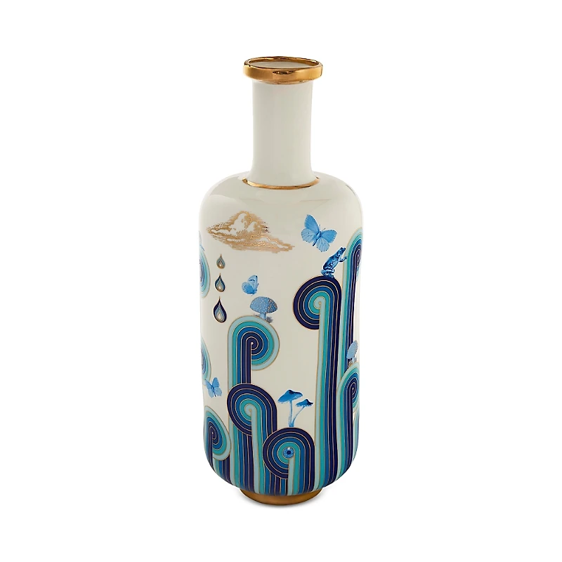 Jonathan Adler Druggist Bottle Vase.Color:Blue/White/Gold.Material:High-fired porcelain.