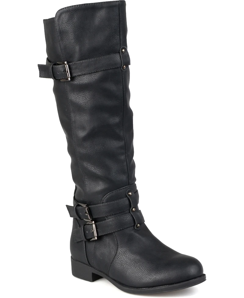 Journee Collection Women's Bite Wide Calf Knee High Buckle Boots