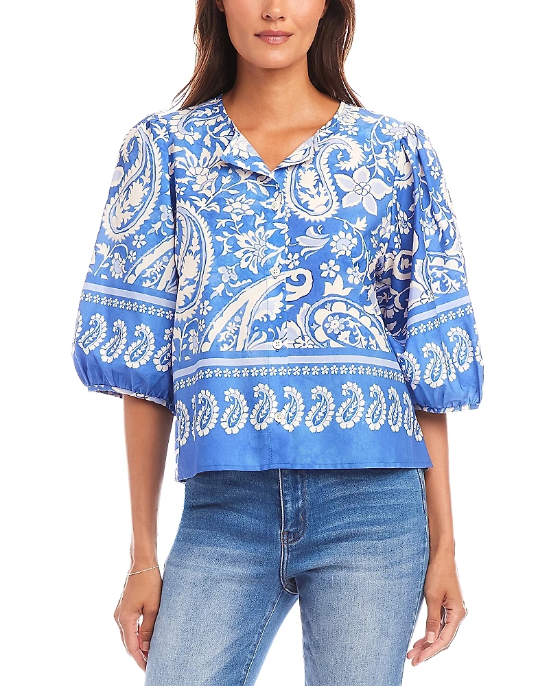Karen Kane Puffed Sleeve Paisley Print Blouse
