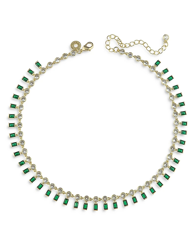 Kenneth Jay Lane Round & Emerald Cut Cubic Zirconia Choker Necklace in 14K Gold Plated, 14"-17"
