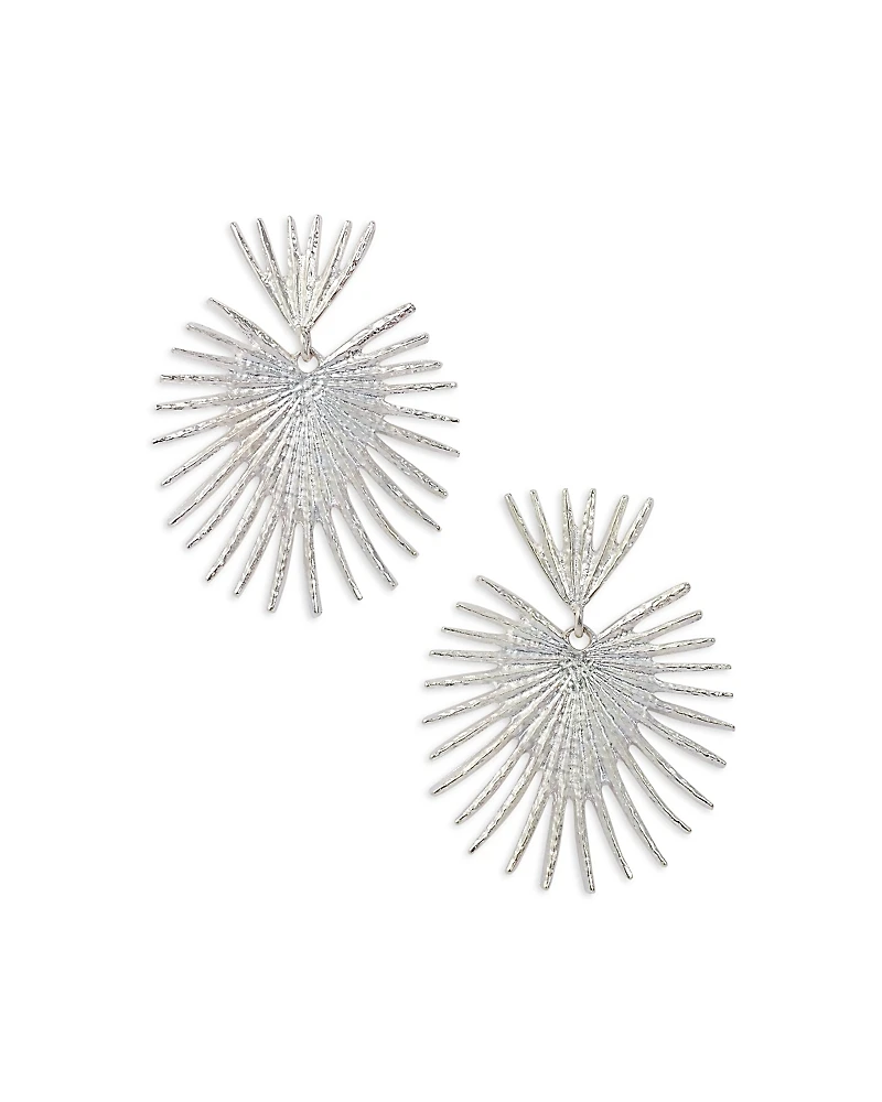 Kenneth Jay Lane Silver Fan Large Earrings.Color:Silver.Earrings.