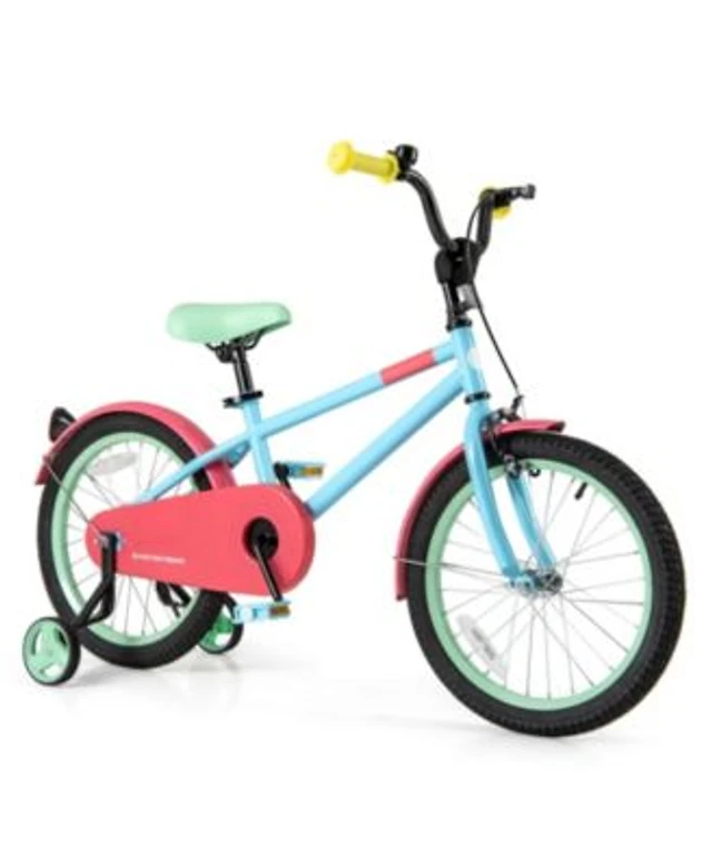 Hongge 18-Inch Kids Bike with Adjustable Handlebar, Saddle, and Training Wheels - Blue