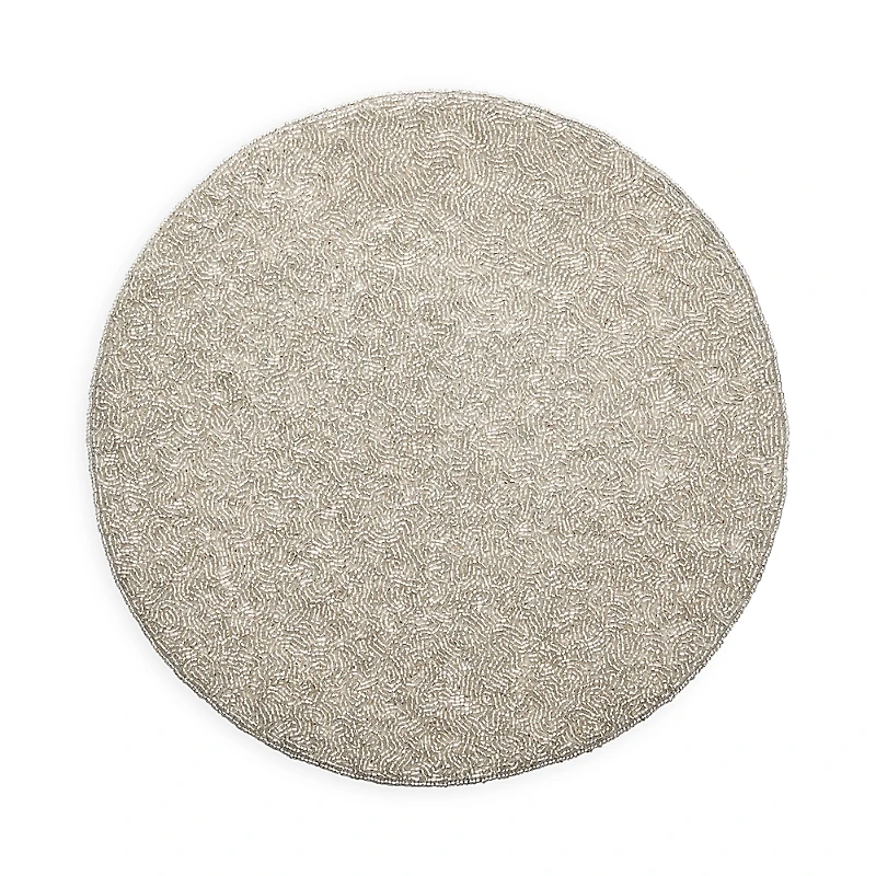 Kim Seybert Vermicelli Placemat.Color:Silver.Material:Glass beads; reverses to cotton.Table Linens.
