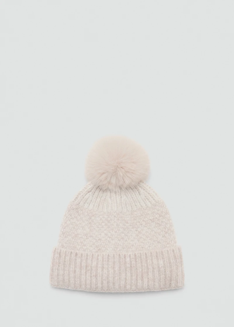 Knitted fabric. Tassel detail. Turned-up hem. Ribbed design. Available set. Christmas Collection.