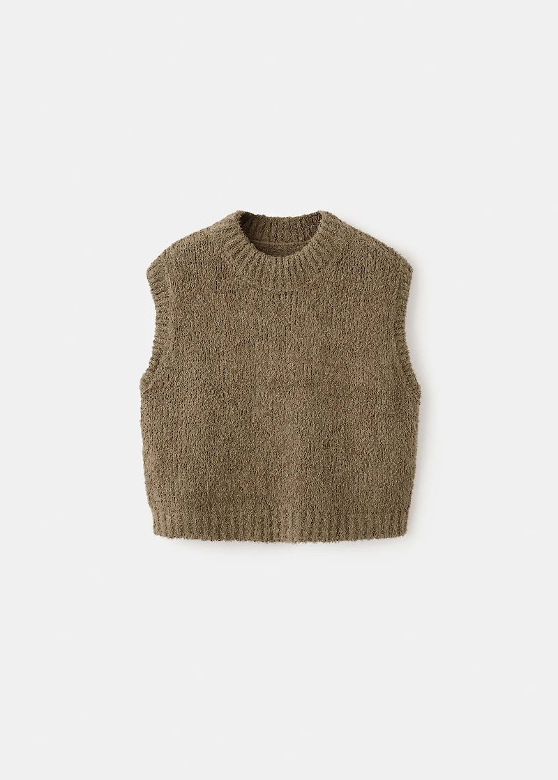 Faux shearling fabric. Straight design. Round neckline. Sleeveless.