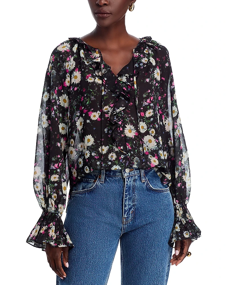 Kobi Halperin Sydney Blouse.Color:Black Multi.Size:XS.Material:100% polyester.Tops.