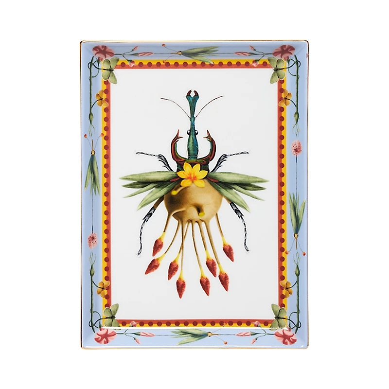 What a dish! This porcelain tray, emblazoned with a Throat Chakra activating Parrotstem design from La DoubleJ's Fantastic Creatures collection with artist Beto Val, is designed to do it all. Fill it with nuts, chips or olives for your aperitivo. Put it on your entryway console to catch keys and coins. Or maybe, considering it's crafted by the finest artisans in Verona with a hand-painted 18K gold trim, it should take center stage on your vanity to display your most precious jewels. However you use it, this Trinket Tray is made for treasures, and for treasuring.