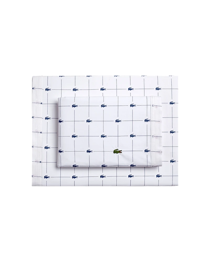 Lacoste Mini Geo Logo 200-Thread Count Cotton 3-Pc. Sheet Set, Twin