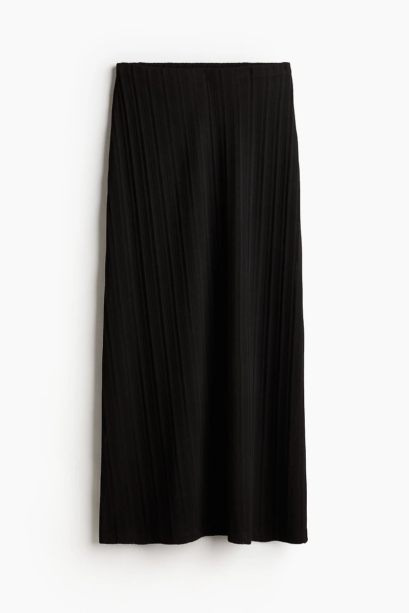 Long skirt in a soft rib knit with a ladder-stitch look. Concealed, elasticized waistband and a straight hem.