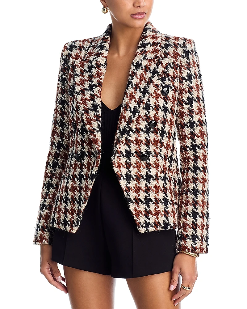 L'Agence Marie Double Breasted Blazer.Color:Black/Brown/Cream.Size:0.Material:Acrylic/polyester/wool; lining: polyester.