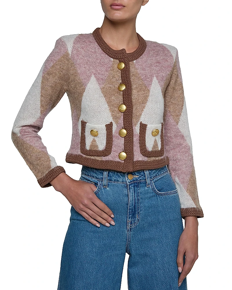 L'Agence Siobhan Fuzzy Argyle Cardigan Sweater