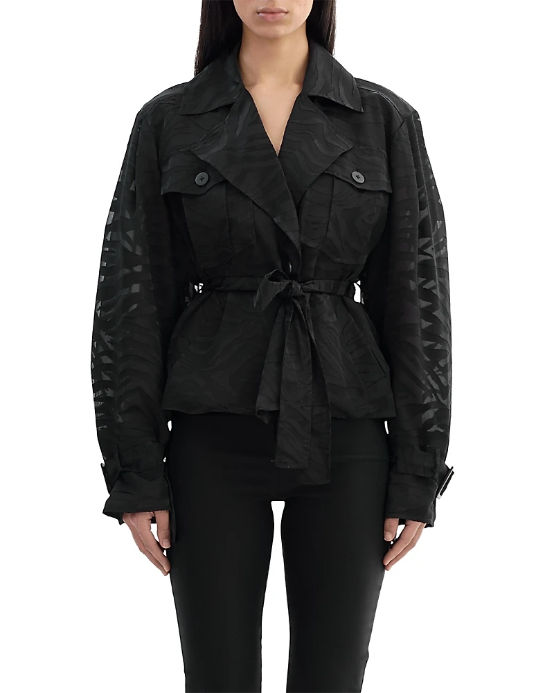 Lamarque Oversized Belted Jacket.Color:Black Zebra.Size:L.Material:Shell: 50% polyester/50% viscose; lining: 100% polyester.Jackets.