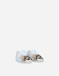 - Newborn lambskin low-top sneakers with leather leopard patch: