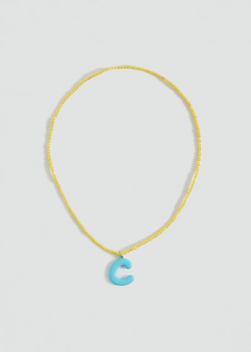 Glass bead pendant. Letter design. Elastic design. No closure.