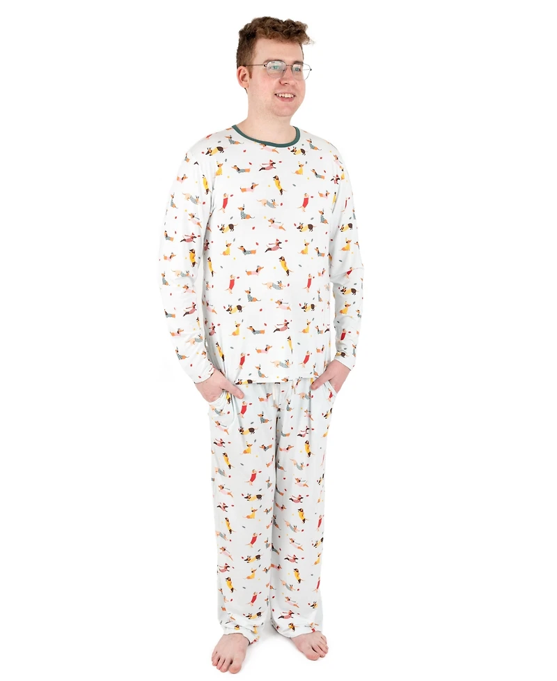 Celebrate the holidays with Leveret Men s Two Piece Viscose from Bamboo Holiday Pajamas, designed for comfort, softness, and festive style. Made from a 95% viscose from bamboo and 5% spandex blend, this silky fabric is breathable, temperature-regulating, and naturally hypoallergenic, offering all-night comfort for sensitive skin. The lightweight stretch material adapts for a perfect fit, while durable stitching ensures long-lasting wear through every holiday season. This two piece set includes a long-sleeve top and pajama pants, finished with a tagless, logoless design for irritation-free comfort. Available in festive holiday prints — Reindeer, Polar Bear, Dogs, and Tree — these Matching Family Pajamas double as cozy loungewear, perfect for relaxing at home. Easy to care for, these Christmas Pajamas are machine washable, built to last, and Great for a Gift that makes holiday traditions even more special. Perfect as Christmas Tree Pajamas for holiday photos and cozy nights.
