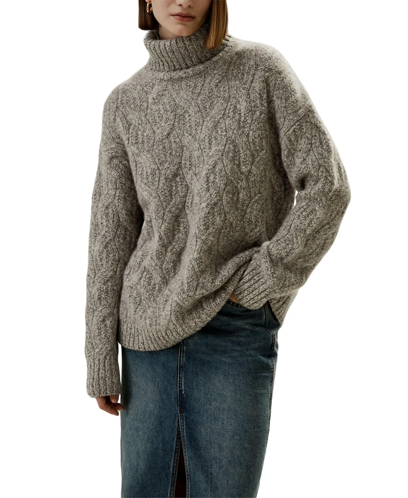 Lilysilk Women's Cable-Knit Cashmere Turtleneck Sweater