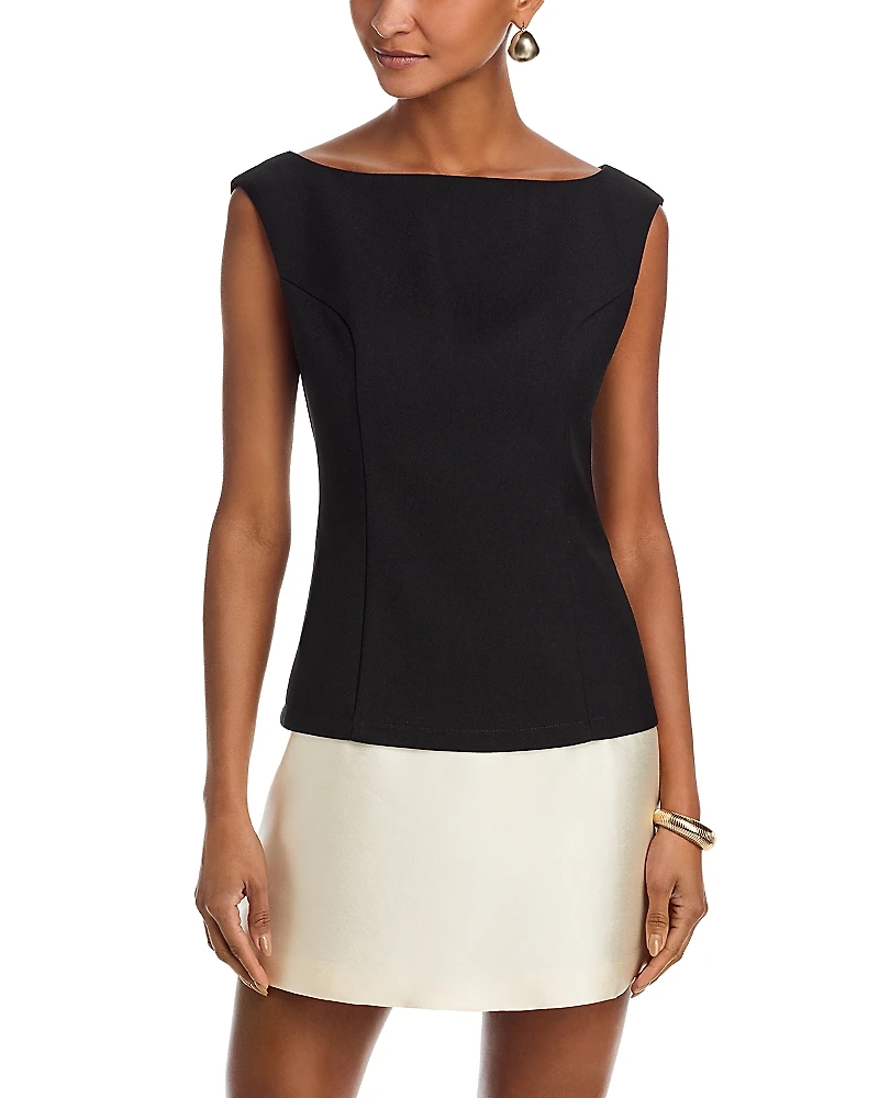 Line & Dot Isabeau Color Blocked Mini Dress.Color:Cream/Black.Size:XS.Material:87% polyester/11% rayon/2% spandex; contrast: 100% polyester; lining: 100% polyester.Dresses.