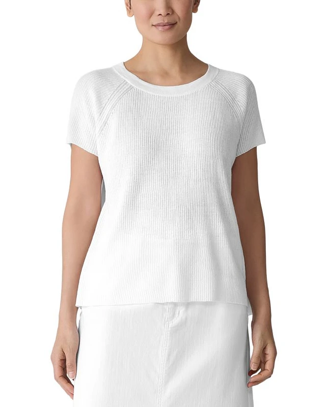 Eileen Fisher Linen Cotton Raglan Short Sleeve Sweater