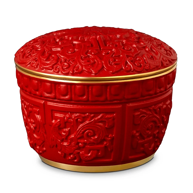 Delicate Limoges porcelain is detailed with 24K gold to create this sculptural L'Objet candlepot.