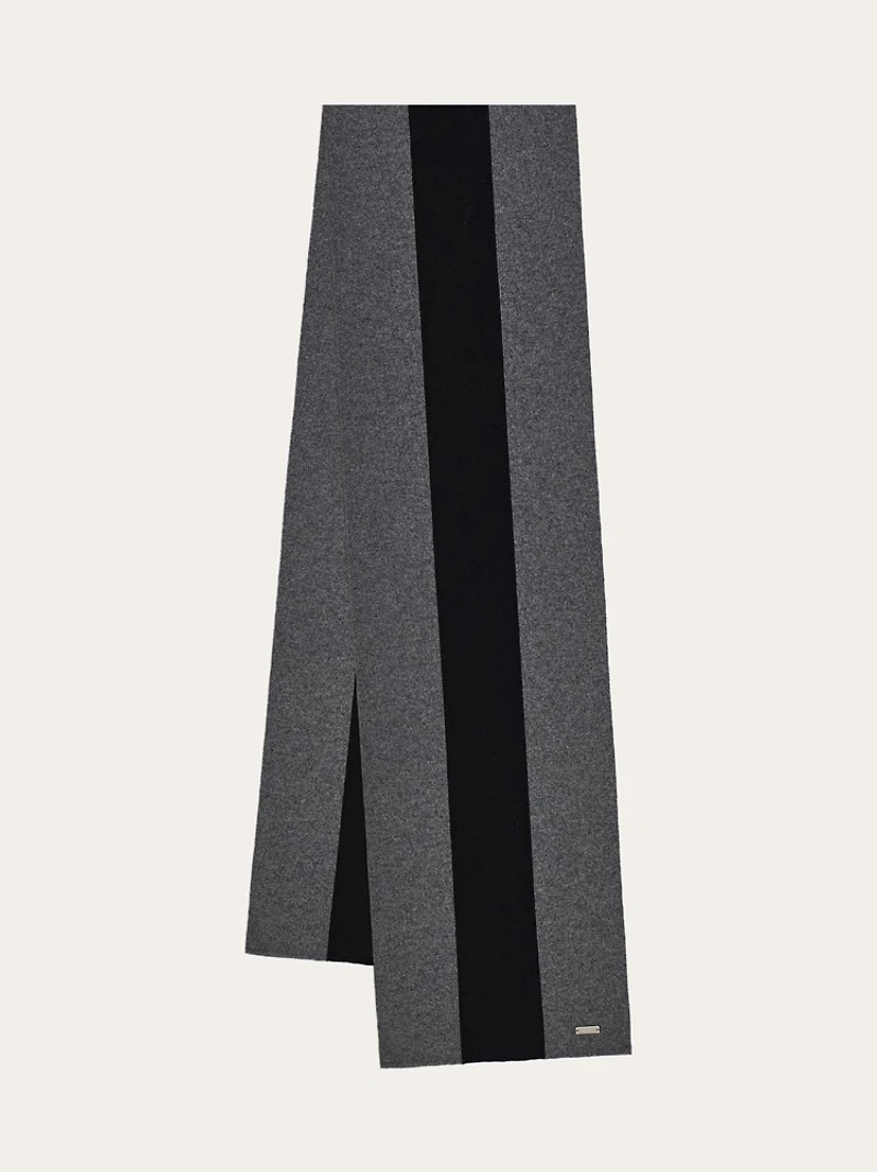Knit stole in a soft cashmere blend, featuring a contrasting central stripe. Its extra length makes it perfect for fresh, contemporary styling.