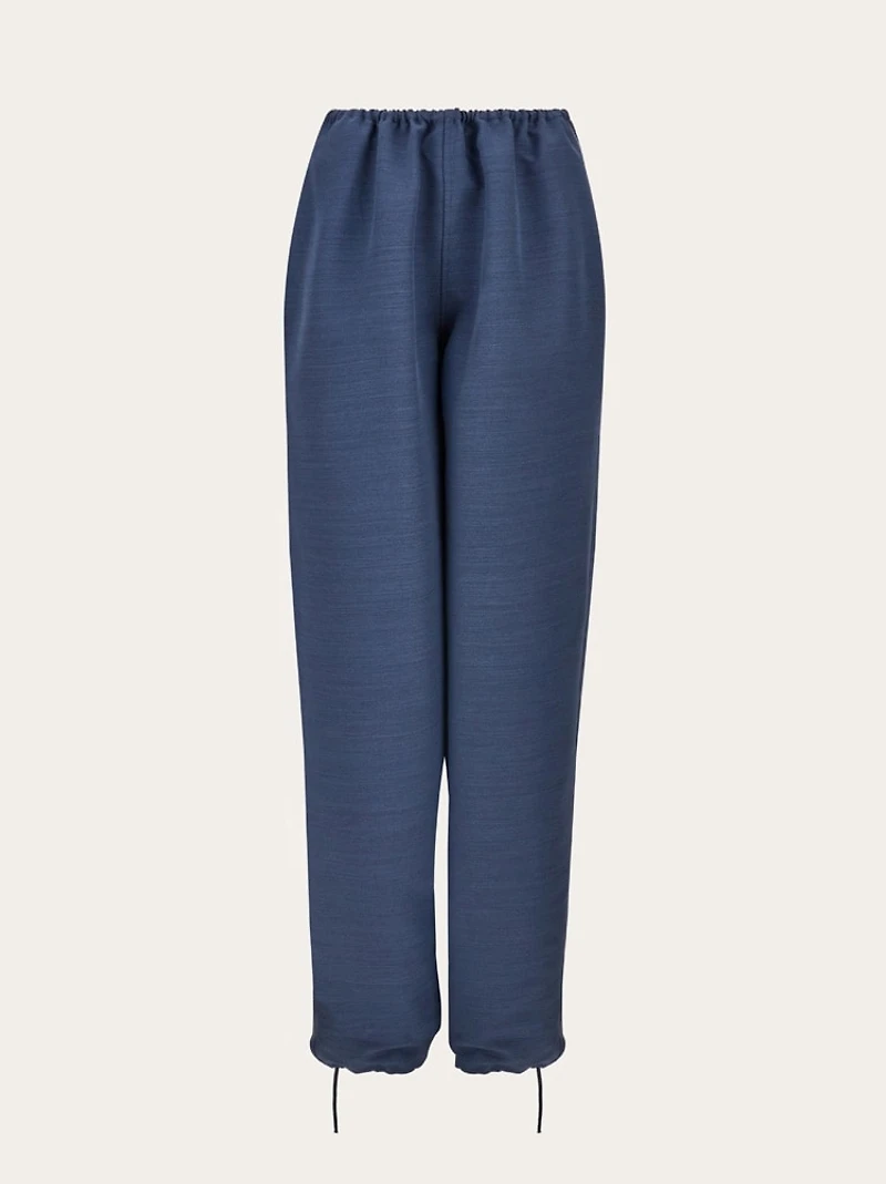 Effortless elegance. The relaxed silhouette of this wool and viscose blend trouser is ideal for off duty days. The elegant fluidity of the fabric draws a voluminous leg with drawstring waist and lace ties at the back of the ankle.