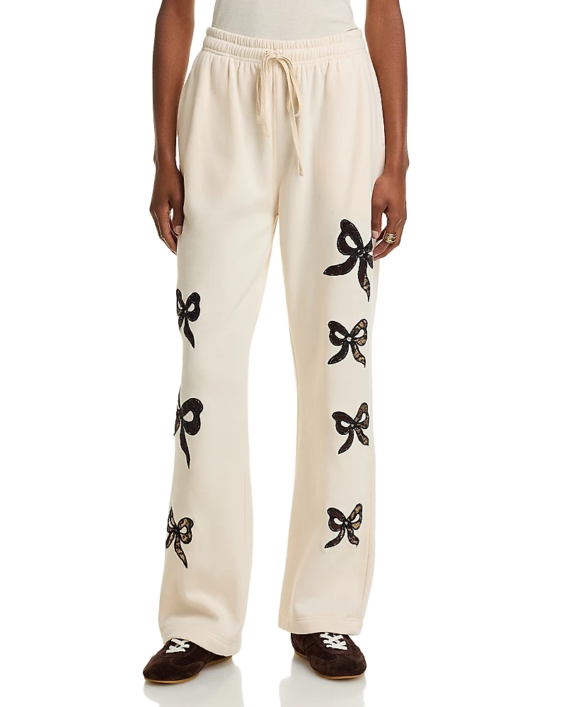 LoveShackFancy Elma Sweatpants.Color:Cream.Size:XS.Material:80% cotton/20% polyester; trim: 100% cotton.Pants.