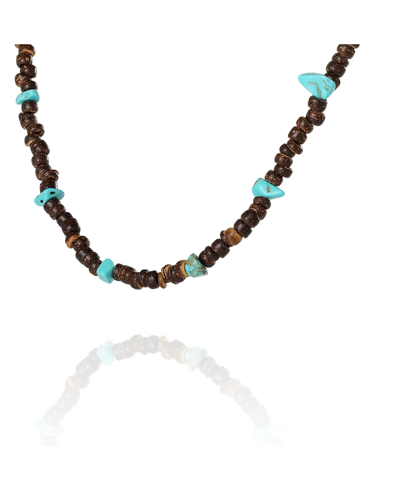 Lucky Brand Men s Wood & Turquoise Beaded 22'' Necklace, Heishi and Turquoise Beads