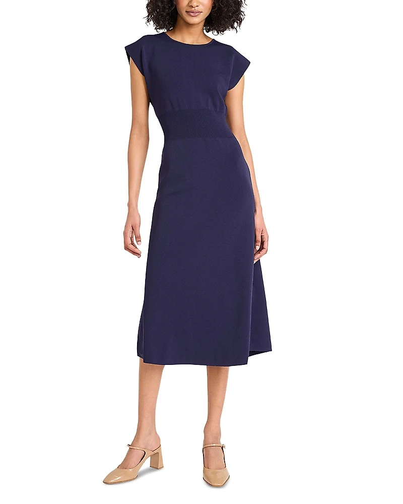 Luxely Extended Shoulder Rib Waist Dress.Color:Evening Blue.Size:M.Material:65% viscose/35% nylon.Dresses.