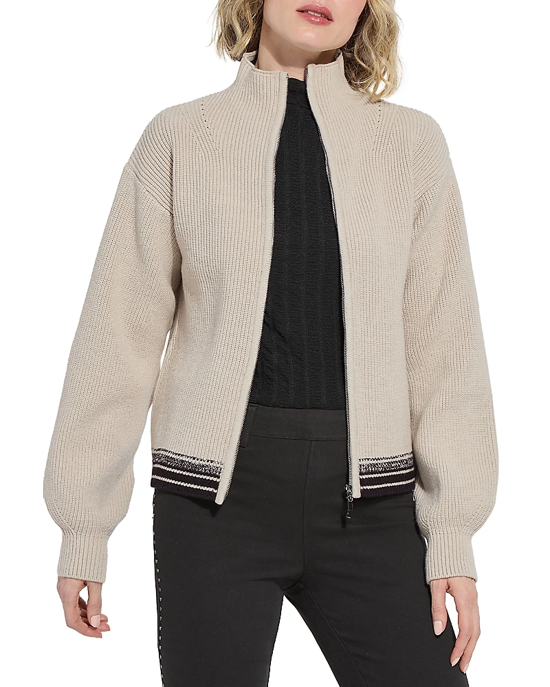 Lysse Blythe Zip Up Cozy Rib Sweater.Color:Extra Beige.Size:XS.Material:78% acrylic/22% polyester.Sweaters.