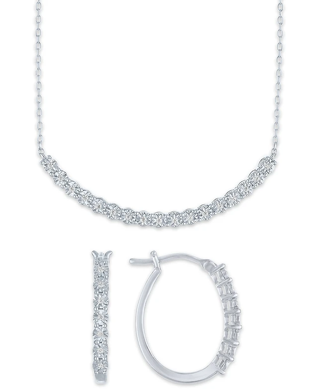 Macy's 2-Pc. Diamond Necklace and Earrings Set (1/6 ct. t.w.) in Sterling Silver