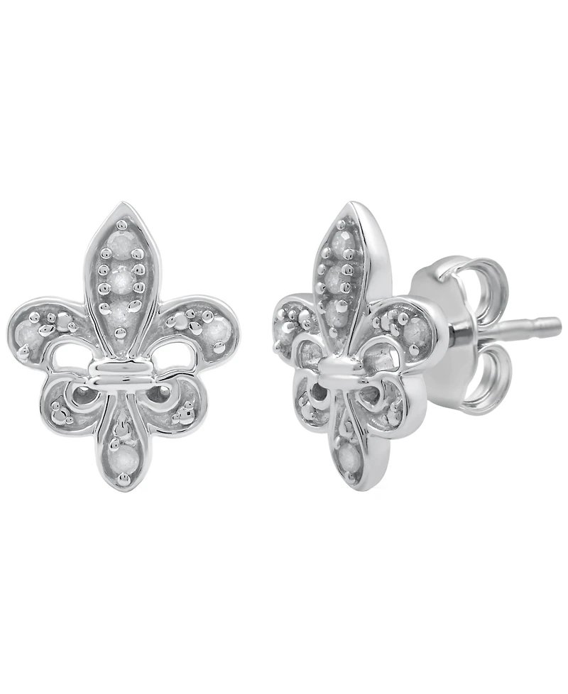 Macy's Diamond Fleurdelis Earrings (1/10 ct. t.w.) in Sterling Silver