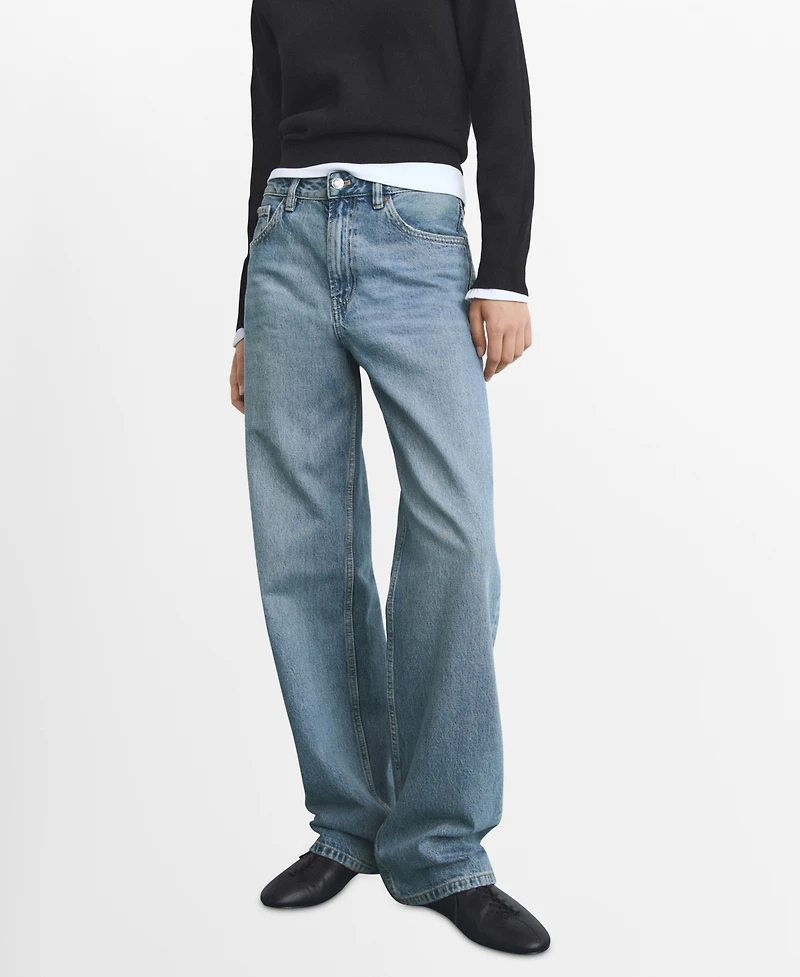 Update your essentials with the Miami Medium-Rise Straight-Fit Jeans from Mango. Made from cotton denim-style fabric, these mid-rise jeans feature a long and straight design, belt loops, five pockets, and button and zipper fastening.