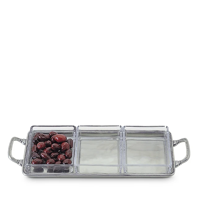 Rectangular Glass Tray with Handles and Gold-Tone Rim